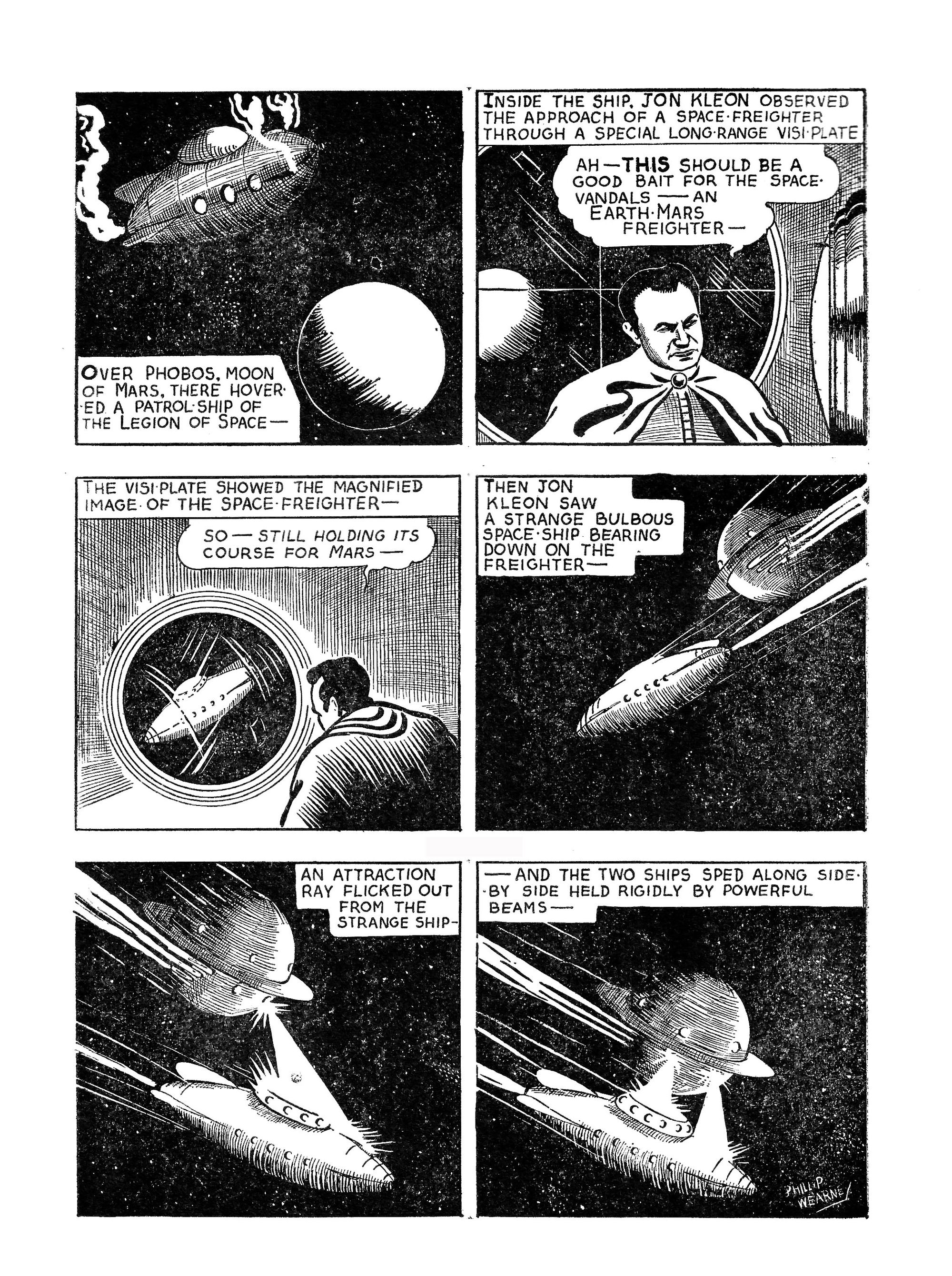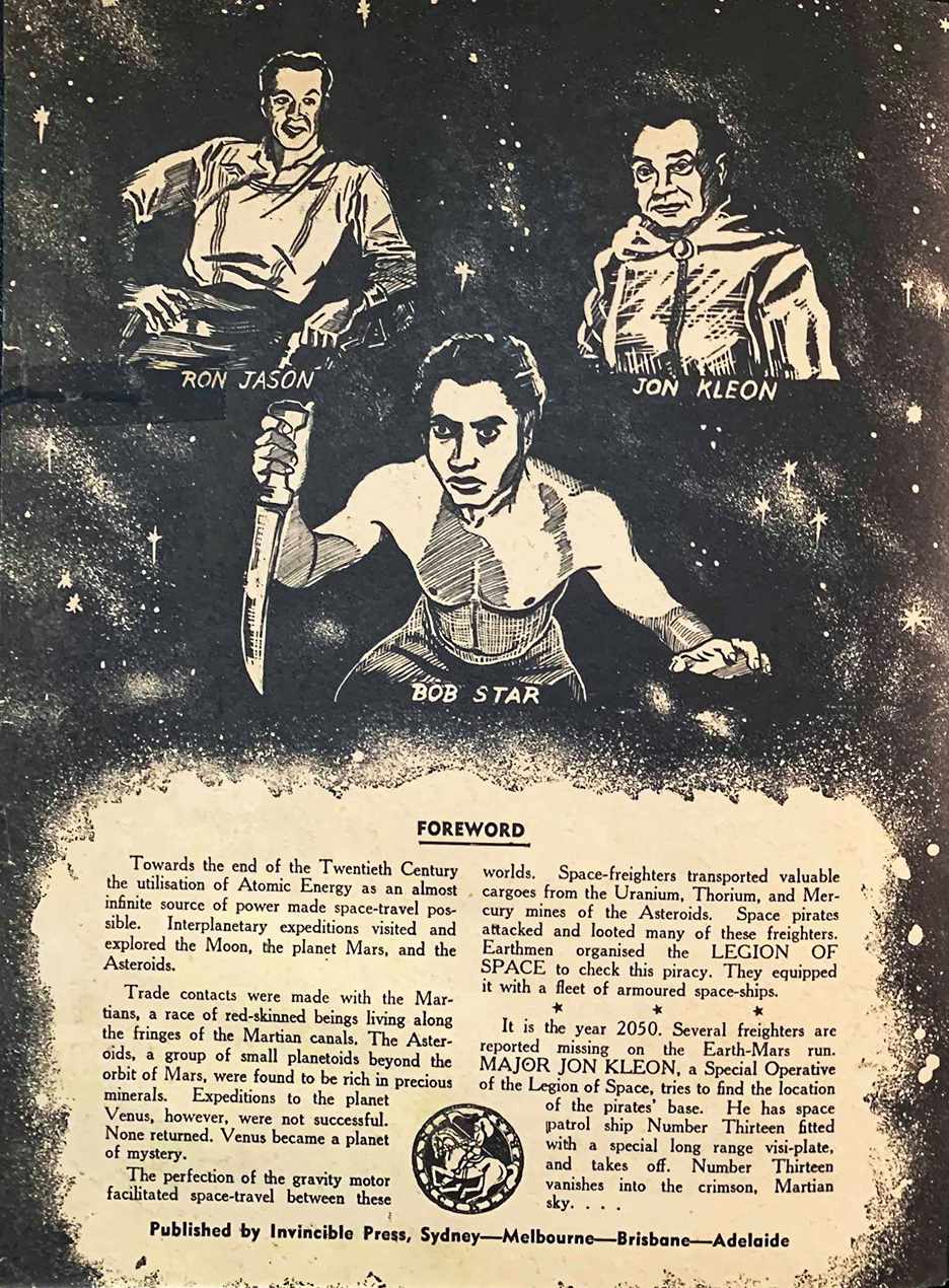 In 1946, Wearne sold the The Legion of Space to Ezra Norton at Invincible Press. Four issues were published, but Wearne had no original concepts and his plagiarism was exposed when Williamson’s Legion of Space was published as a paperback in 1947.