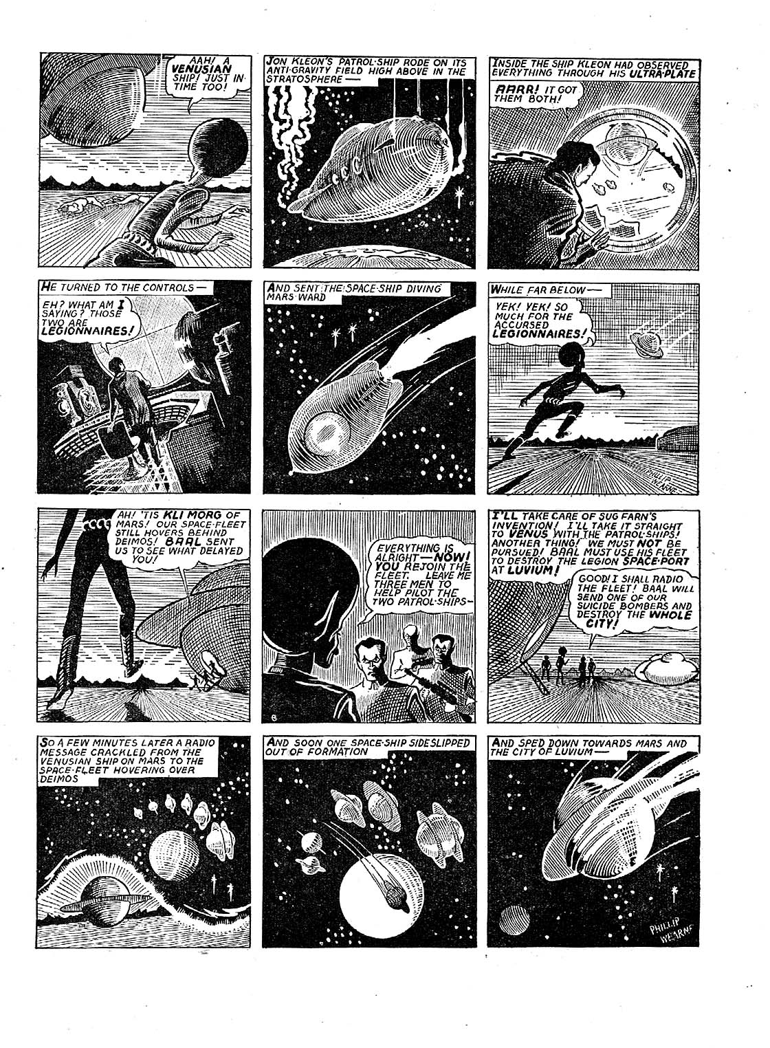 Although still underage, Wearne decided to join the RAAF, hoping to becoming a pilot. He created a second comic The Space Legionnaires, continuing to adapt Williamson's story. The comic was published around November before Wearne was called up in mid-December 1943.