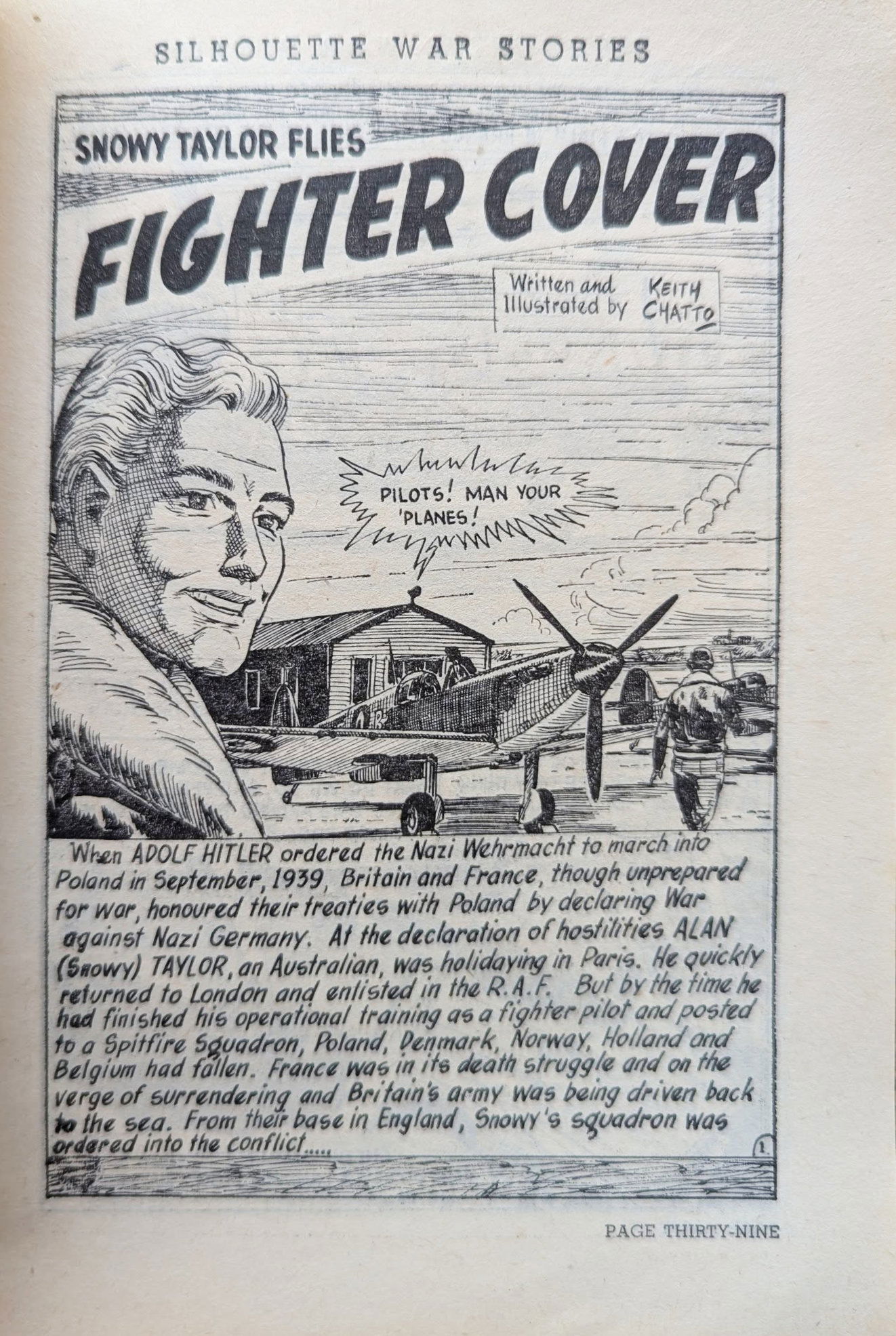 Keith Chatto was born at Kogarah NSW. His father, an accountant for Smith's Weekly, showed his son's art to work colleagues and Jim Russell invited Chatto to attend art classes in Smith's studio. He found work in the art department at Greater Union Theatres and then drew aircraft recognition charts for the the Australian Air Training Corps before enlisting for the second world war.