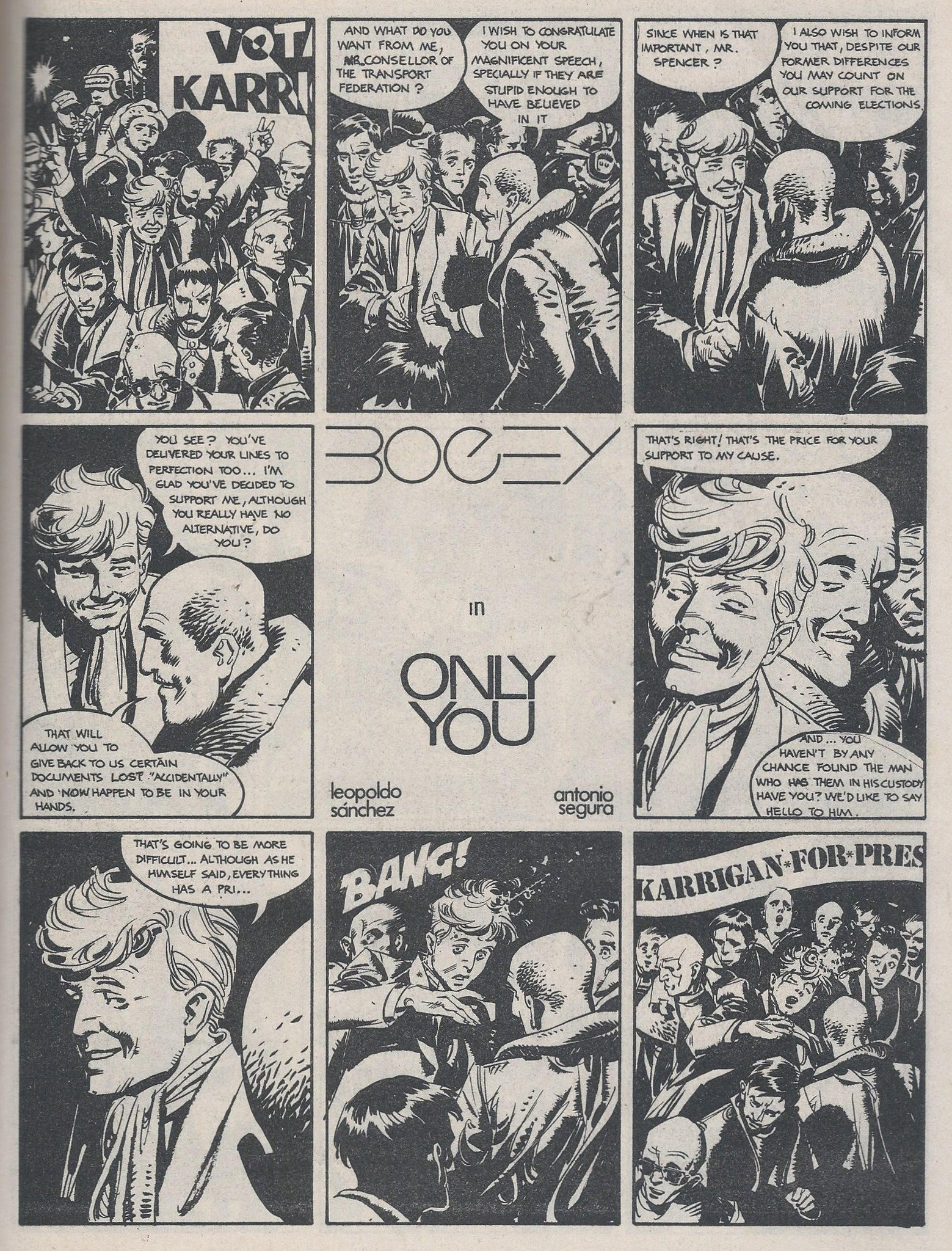 In 1981, Sánchez and Antonio Segura created Bogey, which was syndicated internationally. In 1982 he established the commercially unsuccessful Metropol Editorial (Metropol, Mocambo and KO Comics) with Manfred Sommer, José Ortiz and others. He also worked on El Justiciero Enmascarado (1983). His last comic works were for Cimoc (Norma Editorial) including 'Diario de Arena', which was continued by Luis Bermejo.