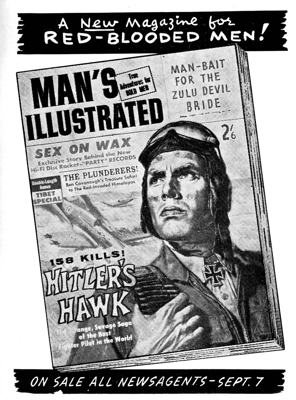A new magazine for red-blooded men! Man-Bait for the Zulu Devil Bride… Sex on Wax… 158 Kills! Hitler's Hawk… 2/6 On sale all newsagents - Sept. 7