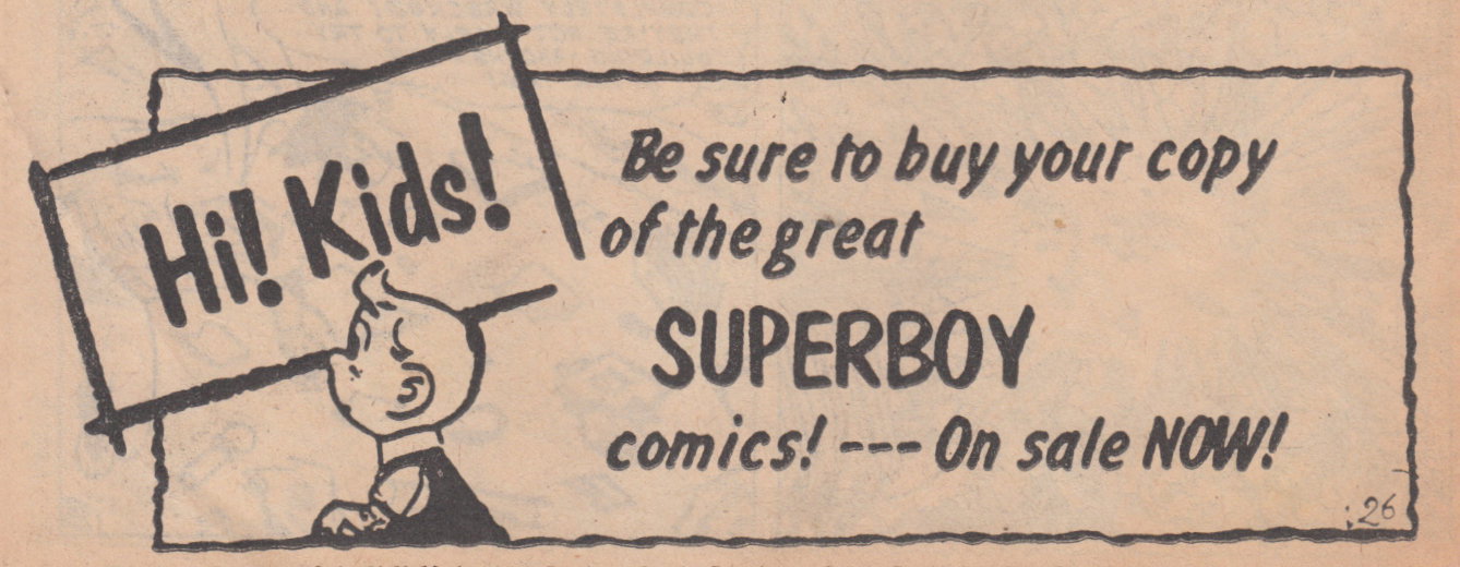Hi! Kids! Be sure to buy your copy of the great Superboy comics! ---On sale now!