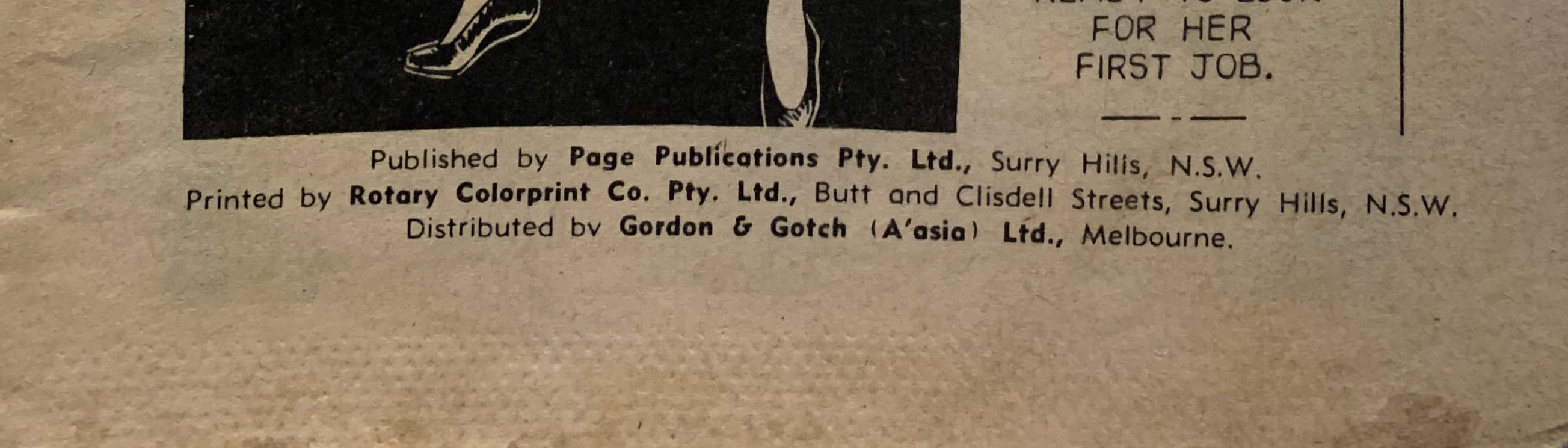 Distributed by Gordon & Gotch (A'asia) Ltd., Sydney/Melbourne. Published by Page Publications Pty. Ltd. Surry Hills, N.S.W. Printed by Rotary Colorprint Co. Pty. Ltd., Butt & Clisdell Sts., Surry Hills, N.S.W.