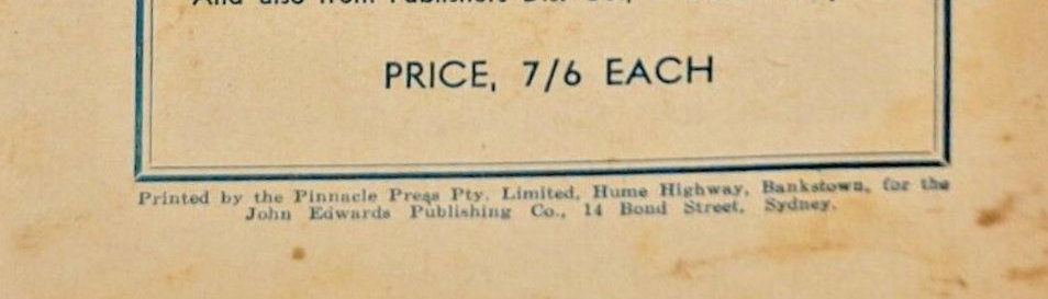 A Leisure Production. Printed by the Pinnacle Press Pty. Limited, Hume Highway, Bankstown, for the John Edwards Publishing Co., 14 Bond Street, Sydney.