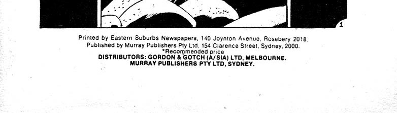 Printed by Eastern Sububs Newspapers, 140 Joynton Avenue, Rosebery 2018. Published by Murray Publishers Pty Ltd, 154 Clarence Street, Sydney, 2000. Distributors: Gordon & Gotch (A/sia) Ltd, Melbourne. Murray Publishers Pty Ltd, Sydney.