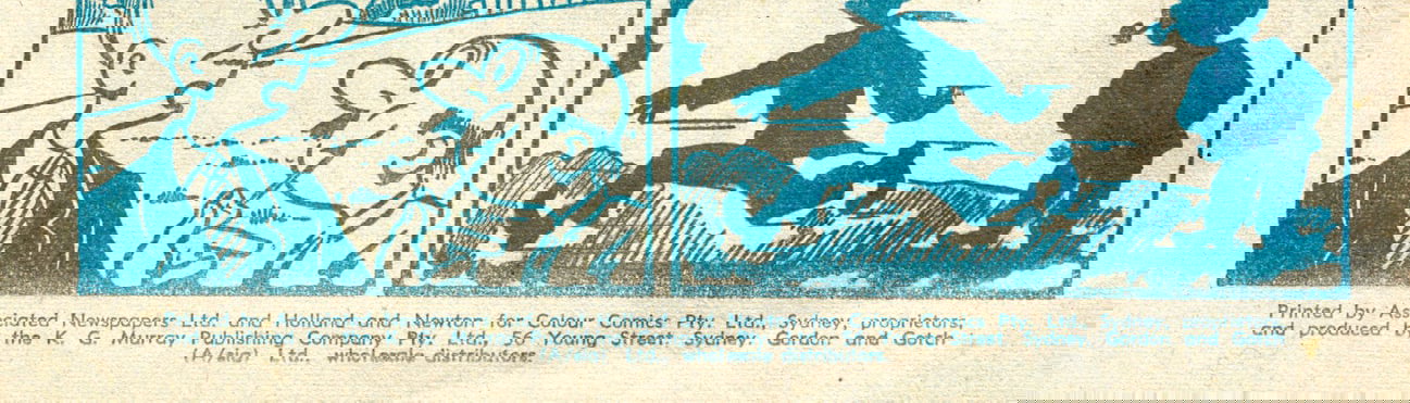 Printed Associated Newspapers Ltd. and Holland and Newton for Color Comics Pty. Ltd., Sydney, proprietors, and produced by the K. G. Murray Publishing company pty. ltd., 56 young Street, Sydney. Gordon and Gotch (a/sia) Ltd., wholesale distributors.