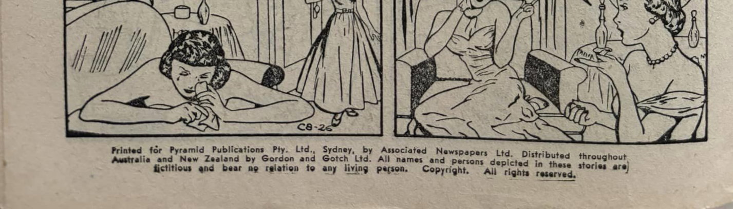 Printed for Pyramid Publications Pty. Ltd., Sydney, by Associated Newspapers Ltd. Distributed throughout Australia and New Zealand by Gordon and Gotch Ltd. All names and person depicted in these stories are fictitious and bear no relation to any living persons. Copyright. All rights reserved.