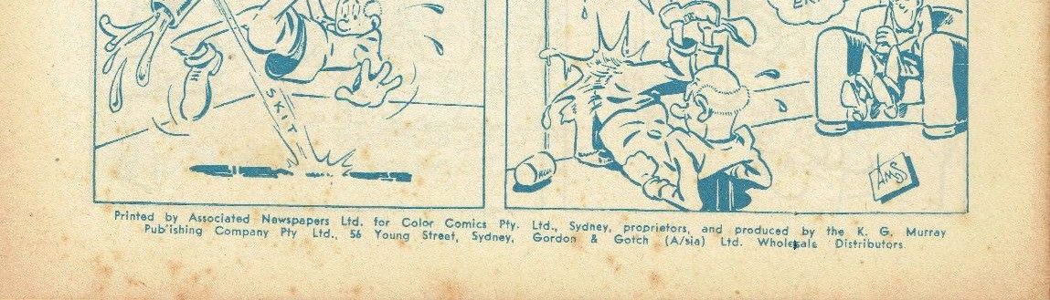 Printed by Associated Newspapers Ltd. For Color Comics Pty. Ltd., Sydney, proprietors, and produced by the K. G. Murray Publishing Company Pty. Ltd., 56 Young Street, Sydney. Gordon & Gotch (A/sia) Ltd. Wholesale Distributors.