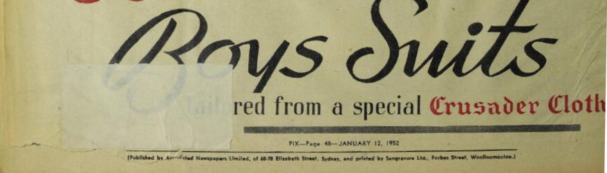 Published by Associated Newspapers Limited, of 68-70 Elizabeth Street, Sydney, and printed by Sungravure Ltd., Forbes Street, Woolloomooloo.