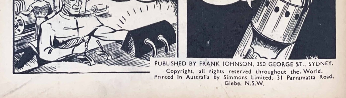 Published by Frank Johnson, 350 George St., Sydney. Copyright, all rights reserved throughout the world. Printed in Australia by Simmons Limited, 31 Parramatta Road, Glebe, N.S.W.