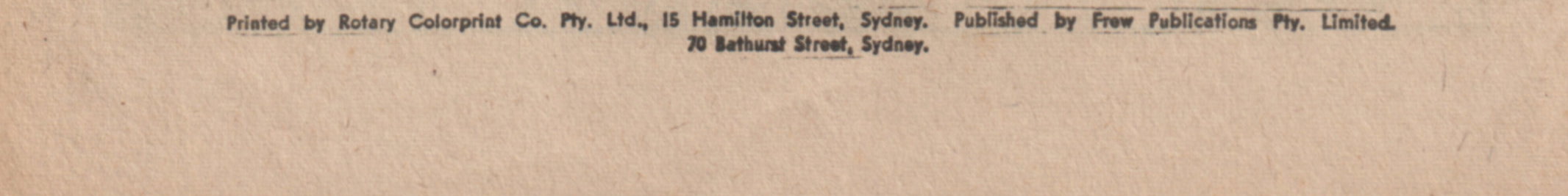 Printed by Rotary Colorprint Co. Pty. Ltd., 15 Hamilton Street, Sydney. Published by Frew Publications Pty. Limited. 70 Bathurst Street, Sydney.