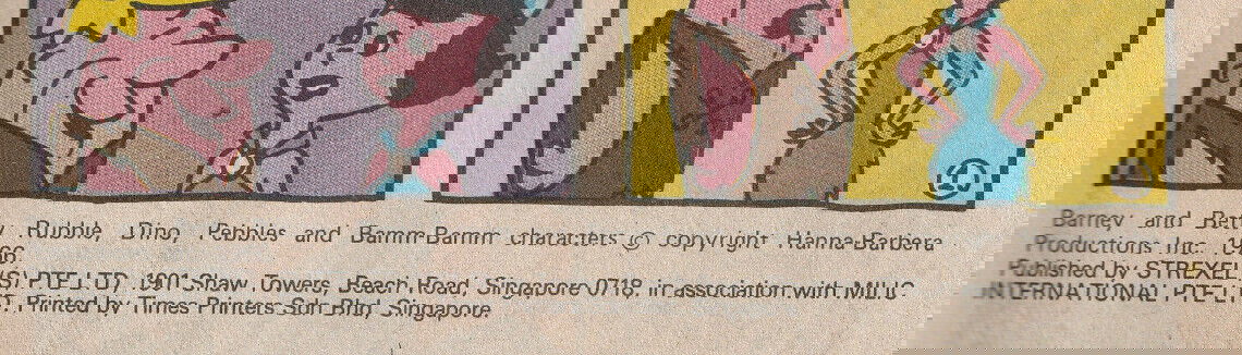 Barney and Betty Rubble, Dino, Pebbles and Bamm-Bamm characters © copyright Hanna-Barbera Productions Inc. 1966. Published by Strexel (S) Pte Ltd, 1901 Shaw Towers, Beach Road, Singapore 0718, in association with Milic International Pte Ltd. Printed by Times Printers Sdn Bhd, Singapore.