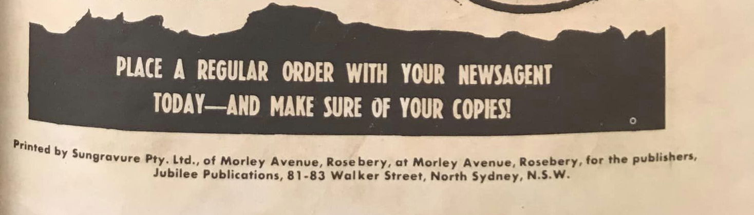 Printed by Sungravure Pty. Ltd., of Moreley Avenue, Rosebery, at Moreley Avenue, Rosebery, for the publishers, Jubilee Publications 81-83 Walker Street, North Sydney, N.S.W.