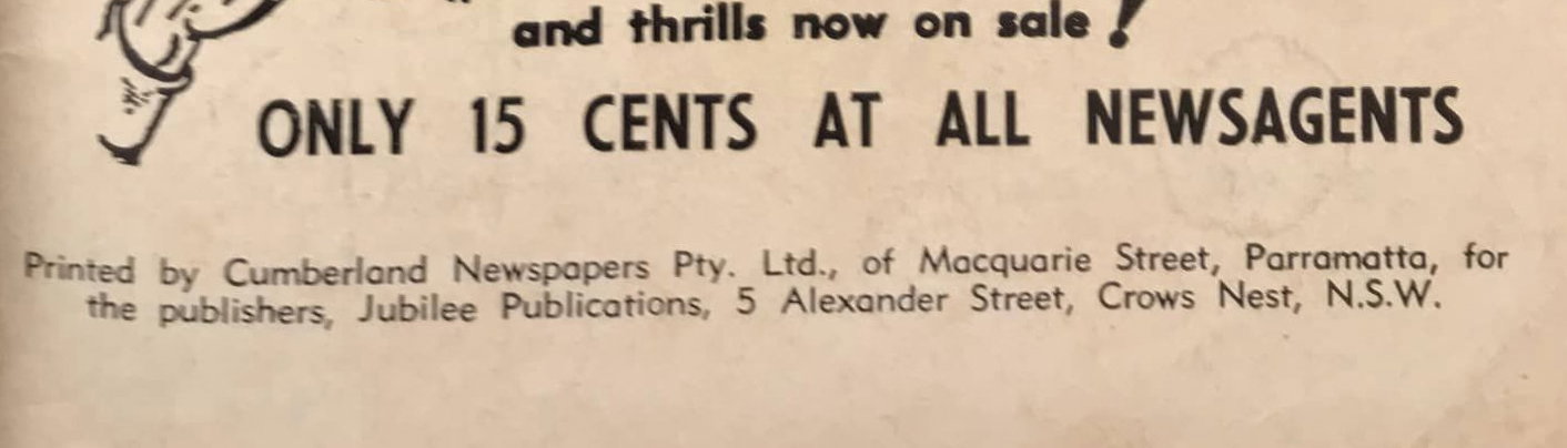 Printed by Cumberland Newspapers Pty. Ltd., of Macquarie Street, Parramatta, for the publishers Jubilee Publications, 5 Alexander Street, Crows Nest, N.S.W.