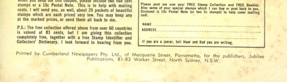 Printed by Cumberland Newspapers Pty. Ltd., of Macquarie Street, Parramatta, for the publishers, Jubilee Publications, 81-83 Walker Street, North Sydney, N.S.W.
