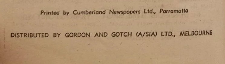 Published by Calvert Publishing Co. Pty. Ltd., 90 Pitt Street, Sydney. Printed by Cumberland Newspapers Ltd., Parramatta. Distributed by Gordon and Gotch (A/sia) Ltd., Melbourne.