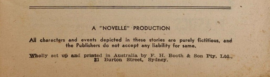 Wholly set up and printed in Australia by F. H. Booth & Son Pty. Ltd., 31 Burton Street, Sydney.