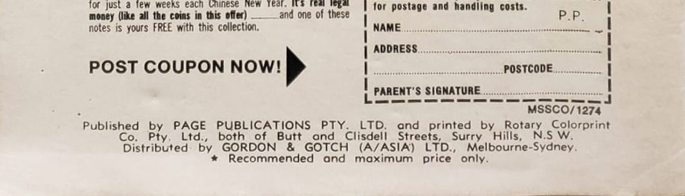 Published by Page Publications Pty. Ltd. And printed by Rotary Colorprint Co. Pty. Ltd., both of Butt and Clisdell Streets, Surry Hills, N.S.W. Distributed by Gordon & Gotch (A/asia) Ltd., Melbourne-Sydney.