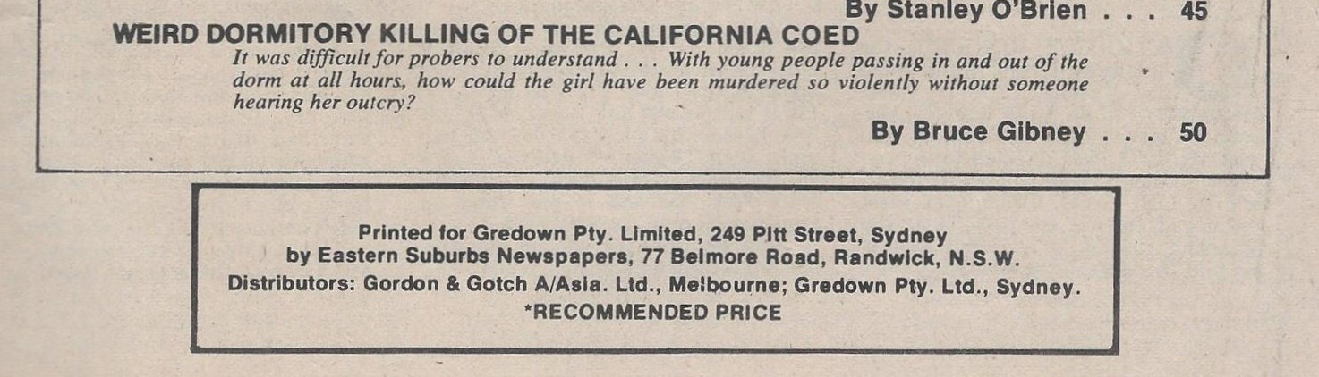 Printed for Gredown Pty. Limited, 249 Pitt Street, Sydney by Eastern Suburbs Newspapers, 77 Belmore Road, Randwick, N.S.W. Distributors: Gordon & Gotch A/Asia. Ltd., Melbourne; Gredown Pty. Ltd., Sydney.