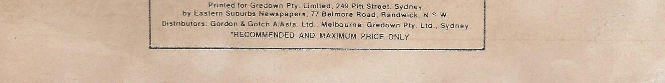 Printed for Gredown Pty. Limited, 245 Pitt Street, Sydney, by Eastern Suburbs Newspapers, 77 Belmore Road, Randwick, N.S.W. Distributors: Gordon & Gotch A/Asia, Ltd., Melborune: Gredown Pty. Ltd., Sydney.