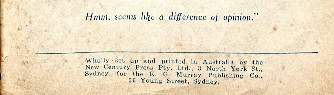 Wholly set up and printed in Australia by the New Century Press Pty. Ltd., 3 North York St., Sydney, for the K. G. Murray Publishing Co., 56 Young Street, Sydney.