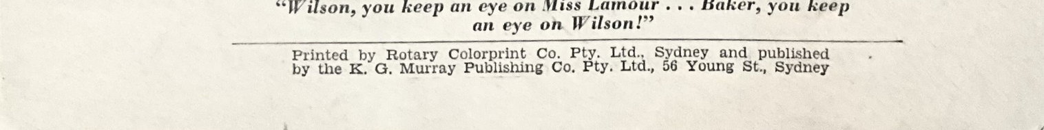 Printed by Rotary Colorprint Co. Pty. Ltd., Sydney and published by the K. G. Murray Publishing Co. Pty. Ltd., 56 Young St., Sydney.