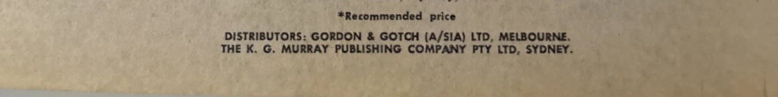 Printed by Kenmure Press Pty Ltd, 50 Derby Street, North Lidcombe, NSW, 2141, Australia. Published by The K. G. Murray Publishing Company Pty Ltd, 142 Clarence Street, Sydney, 2000. Distributors: Gordon & Gotch (A/sia) Ltd, Melbourne. The K. G. Murray Publishing Company Pty Ltd, Sydney.