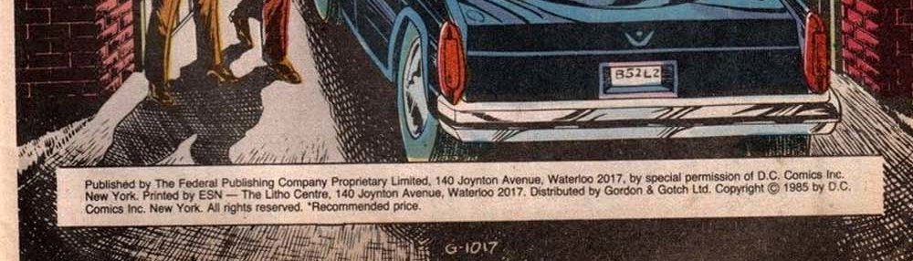 Published by The Federal Publishing Company Proprietary Limited, 140 Joynton Avenue, Waterloo 2017, by special permission of D.C. Comics Inc. New York. Printed by ESN—The Litho Centre, 140 Joynton Avenue, Waterloo 2017. Distributed by Gordon & Gotch Ltd. Copyright © 1985 by D.C. Comics Inc. New York. All rights reserved.