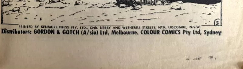 Printed by Kenmure Press Pty. Ltd., Cnr Derby and Wetherill Streets, Nth Lidcombe, for the Proprietors Colour Comics Pty. Ltd., Sydney, and produced by The K. G. Murray Publishing Company Pty. Ltd., 142 Clarence Street. Sequences in this issue Copyright National Periodical Publications Inc.