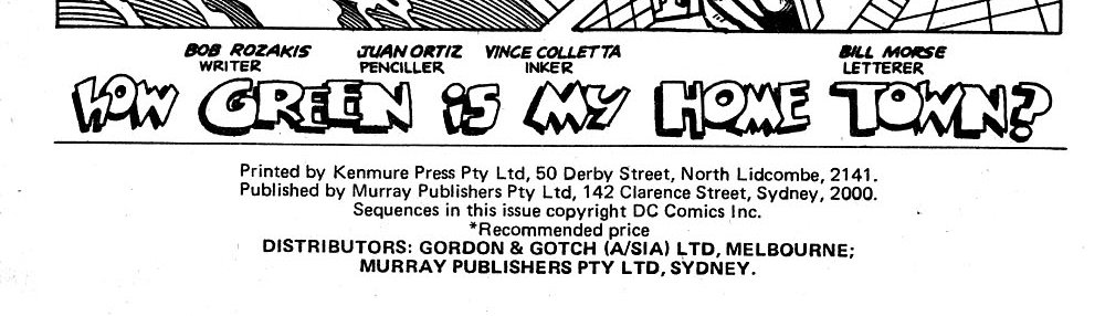 Printed by Kenmure Press Pty Ltd, 50 Derby Street, North Lidcombe, 2141. Published by Murray Publishers Pty Ltd, 142 Clarence Street, Sydney, 2000. Sequences in this issue copyright DC Comics Inc. Distributors: Gordon & Gotch (A/sia) Ltd, Melbourne; Murray Publishers Pty Ltd, Sydney.