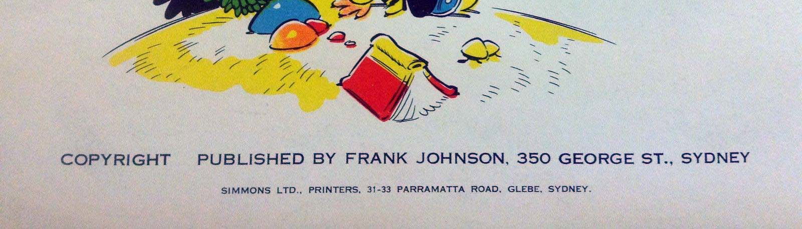 Copyright Published by Frank Johnson, 350 George St., Sydney. Simmons Ltd., Printers, 31-33 Parramatta Road, Glebe, Sydney.