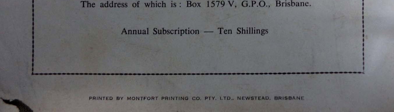 Appearing regularly in the fortnightly publication, the Australasian Voice of Fatima. The address of which is: Box 1579V, G.P.O., Brisbane. Printed by Montfort Printing Co. Pty. Ltd., Newstead, Brisbane.