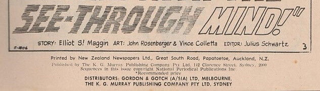 Printed by New Zealand Newspapers Ltd., Great South Road, Papatoetoe, Auckland, N.Z. Published by The K. G. Murray Publishing Company Pty Ltd, 112 Clarence Street, Sydney, 2000. Sequences in this issue copyright Nationa Periodical Publications Inc. Distributors: Gordon & Botch (A/sia) Ltd, Melbourne, The K. G. Murray Publishing Company Pty Ltd, Sydney.