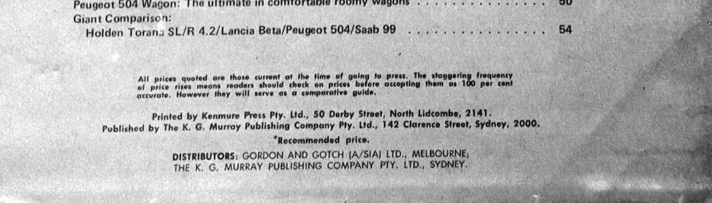 Printed by Kenmure Press Pty. Ltd., 50 Derby Street, North Lidcombe, 2141. Published by The K. G. Murray Publishing Company Pty. Ltd., 142 Clarence Street, Sydney, 2000. Distributors: Gordon and Gotch (A/sia) Ltd., Melbourne; The K. G. Murray Publishing Company Pty. Ltd., Sydney.