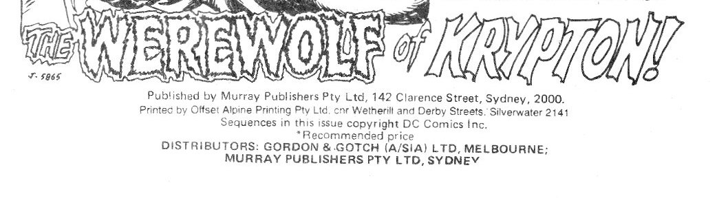 Published by Murray Publishers Pty Ltd, 142 Clarence Street, Sydney, 2000. Printed by Offset Alpine Printing Pty Ltd. Cnr Wetherill and Derby Streets, Silverwater 2141. Sequences in this issue copyright DC Comics Inc. Distributors: Gordon & Gotch (A/sia) Ltd, Melbourne; Murray Publishers Pty Ltd, Sydney.