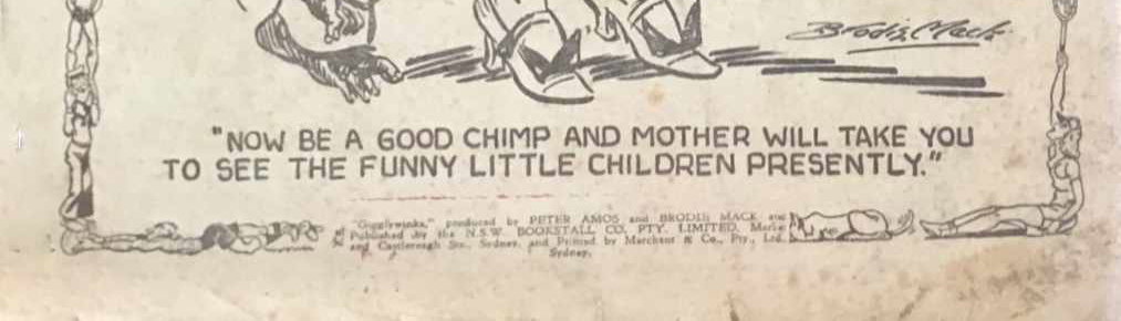 "Gibblywinks," produced by Peter Amos and Brodie Mack and published by the N.S.W. Bookstall Co. Pty. Limited, Market and Castlereagh Sts, and Printed by Marchant & Co., Pty. Ltd., Sydney.
