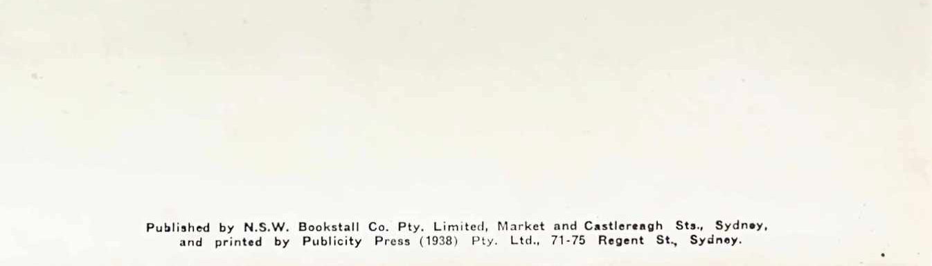 Published by N.S.W. Bookstall Co. Pty. Limited, Market and Castlereagh Sts., Sydney, and printed by Publicity Press (1938) Pty. Ltd., 71-75 Regent St., Sydney.