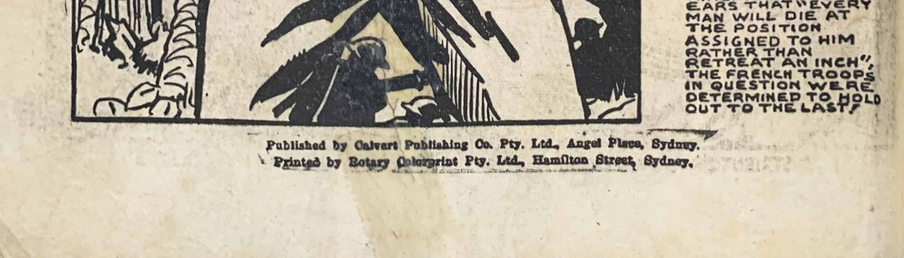 Published by Calvert Publishing Co. Pty. Ltd., Angel Place, Sydney. Printed by Rotary Colorprint Pty. Ltd., Hamilton Street, Sydney. Distributor--Gordon & Gotch (A'sia) Ltd. Sydney. Melbourne
