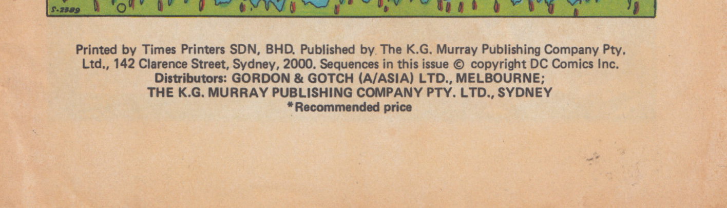 Printed by Times Printers SDN, BHD. Published by The K.G. Murray Publishing Company Pty. Ltd., 142 Clarence Street, Sydney, 2000. Sequences in this issue © copyright DC Comics Inc. Distributors: Gordon & Gotch (A/asia) Ltd., Melbourne; The K.G. Murray Publishing Company Pty. Ltd., Sydney.