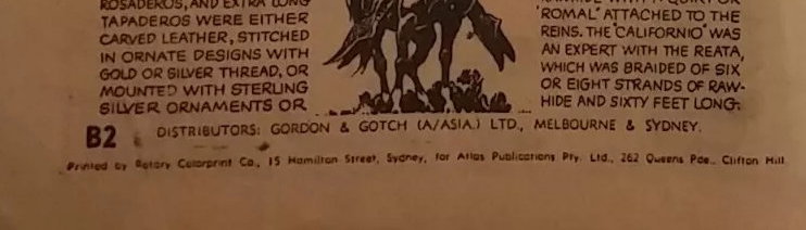 Printed by Rotaary Colorprint Co., 15 Hamilton Street, Sydney, for Atlas Publications pty. Ltd., 262 Queens Pde., Clifton Hill.