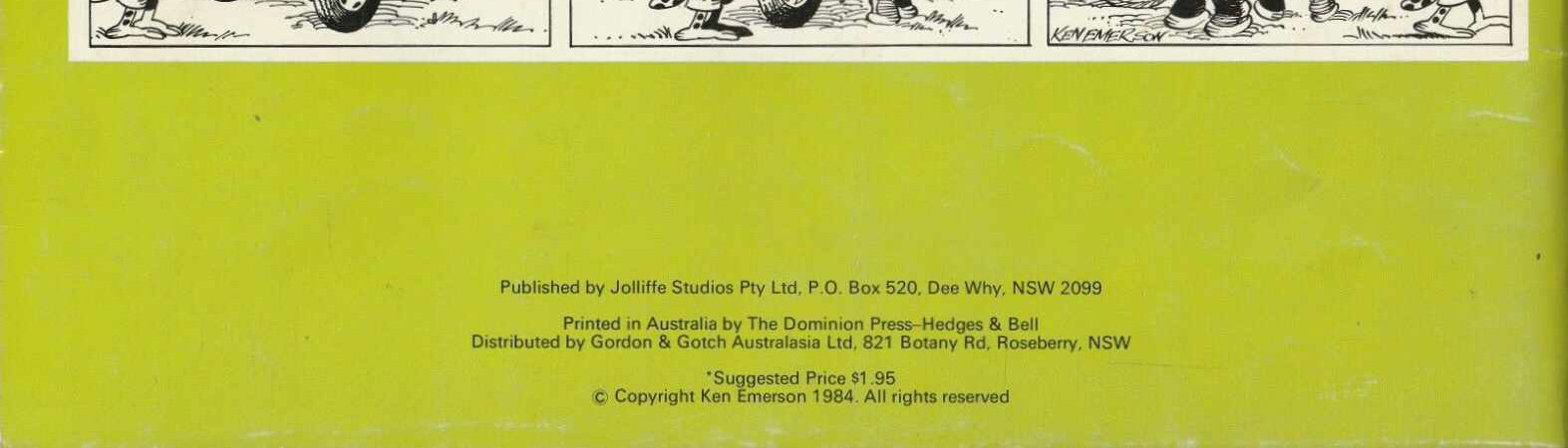 Published by Jolliffe Studios Pty Ltd, P.O. Box 520, Dee Why, NSW, 2099. Printed in Australia by The Dominion Press-Hedges & Bell. Distributed by Gordon & Gotch Australasia Ltd, 821 Botany Road, Roseberry, NSW. © Copyright Ken Emerson 1984. All rights reserved.