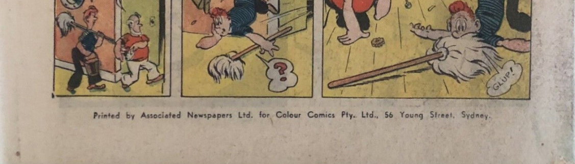 Printed by Associated Newspapers Ltd. for Colour Comics Pty. Ltd., 56 Young Street, Sydney.