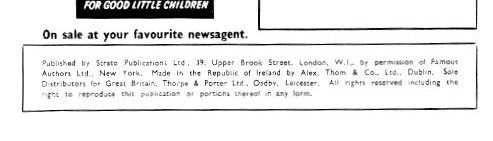 Published by Strato Publications Ltd., 39 Upper Brook Steet, London, W.1., by permission of Famous Authors Ltd., New York. Made in the Republic of Ireland by Alex. Thom & Co., Ltd., Dublin. Sole distributos for Great Britain, Thorpe & Porter Ltd., Oadby, Leicester. All rights reserved including the right to reproduce this publication or portions thereof in any form.
