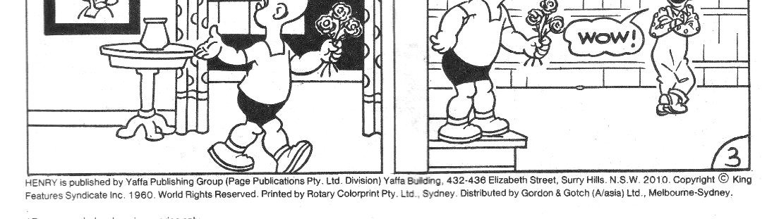 Henry is published by Yaffa Publishing Group (Page Publications Pty. Ltd. Division) Yafa Building, 432-436 Elizabeth Street, Surry Hills, N.S.W. 2010. Copyright © King Features Syndicate Inc. 1960. World rights reserved. Printed by Rotary Colorprint Pty. Ltd., Sydney. Distributed by Gordon & Gotch (A/asia) Ltd., Melbourne-Sydney.