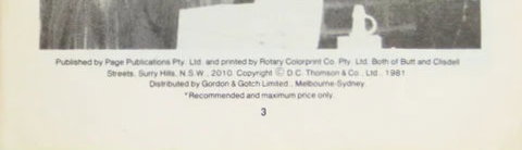 Published by Page Publications Pty. Ltd. And printed by Rotary Colorprint Co. Pty. Ltd. Both of Butt and Clisdell Streets, Surry Hills, N.S.W. 2010 © D.C. Thomson and Company Ltd. 1981 Distributed by Gordon & Gotch Limited., Melbourne-Sydney.