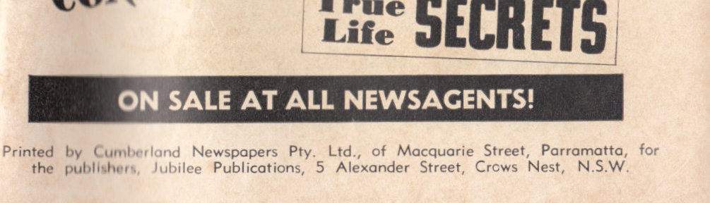 Printed by Cumberland Newspapers Pty. Ltd., of Macquarie Street, Parramatta, for the publishers, Jubilee Publications, 5 Alexander Street, Crows Nest, N.S.W.
