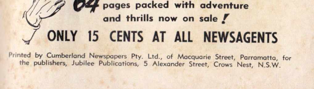 Printed by Cum berland Newspapers Pty. Ltd., of Macquaqrie Street, Parramatta, for the publishers, Jubilee Publications, 5 Alexander Street, Crows Nest, N.S.W.