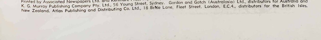 Printed by Associated Newspapers Ltd. and Kenmure Press Pty. Ltd., for Colour Comics Pty. Ltd., Sydney, proprietors, and produced by the K. G. Murray Publishing Company Pty. Ltd., 56 Young Street, Sydney. Gordon and Gotch (Australasia) Ltd., distributors for Australia and New Zealand. Atlas Publishing and Distributing Co. Ltd., 18 Bride Lane, Fleet Street, London, E.C.4., distributors for the British Isles.