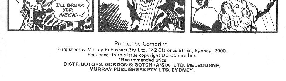 Printed by Comprint. Published by Murray Publishers Pty Ltd, 142 Clarence Street, Sydney, 2000. Sequences in this issue copyright DC Comics Inc. Distributors: Gordon & Gotch (A/sia) Ltd, Melbourne; Murray Publishers Pty Ltd, Sydney.