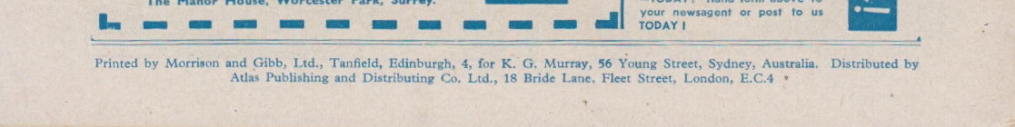 Printed by Morrison and Gibb, Ltd., Tanfield, Edinburgh, 4, for K. G. Murray, 56 Young Street, Sydney, Australia. Distributed by Atlas Publishing and Distributing Co. Ltd., 19 Bride Lane, Fleet Street, London, E.C.4